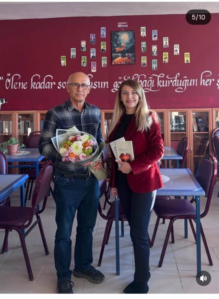 Etkinlikte Bilgin, yazarlık serüvenine dair tecrübelerini öğrencilerle paylaşarak gençlere okumayı, üretmeyi ve düşünmeyi teşvik eden mesajlar verdi. Öğrencilerin soruları ve etkileşimiyle program verimli bir sohbet ortamına dönüştü.