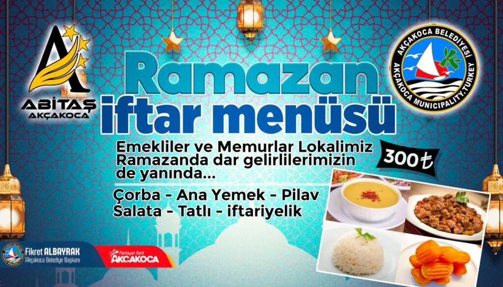 Akçakoca Belediye Başkanı Fikret Albayrak’ın “Sosyal Belediyecilik” vizyonu ve ABİTAŞ Genel Müdürü Yakup Gören’in yönetim başarısı, Ramazan ayında gönülleri fethedecek bir projeye dönüştü. İkili, artan gıda fiyatlarına inat, Emekliler Lokali’nde 4 çeşit zengin iftar menüsünü sadece 300 TL’ye sunarak dar gelirli ailelere ve tüm vatandaşlara kapılarını açıyor.