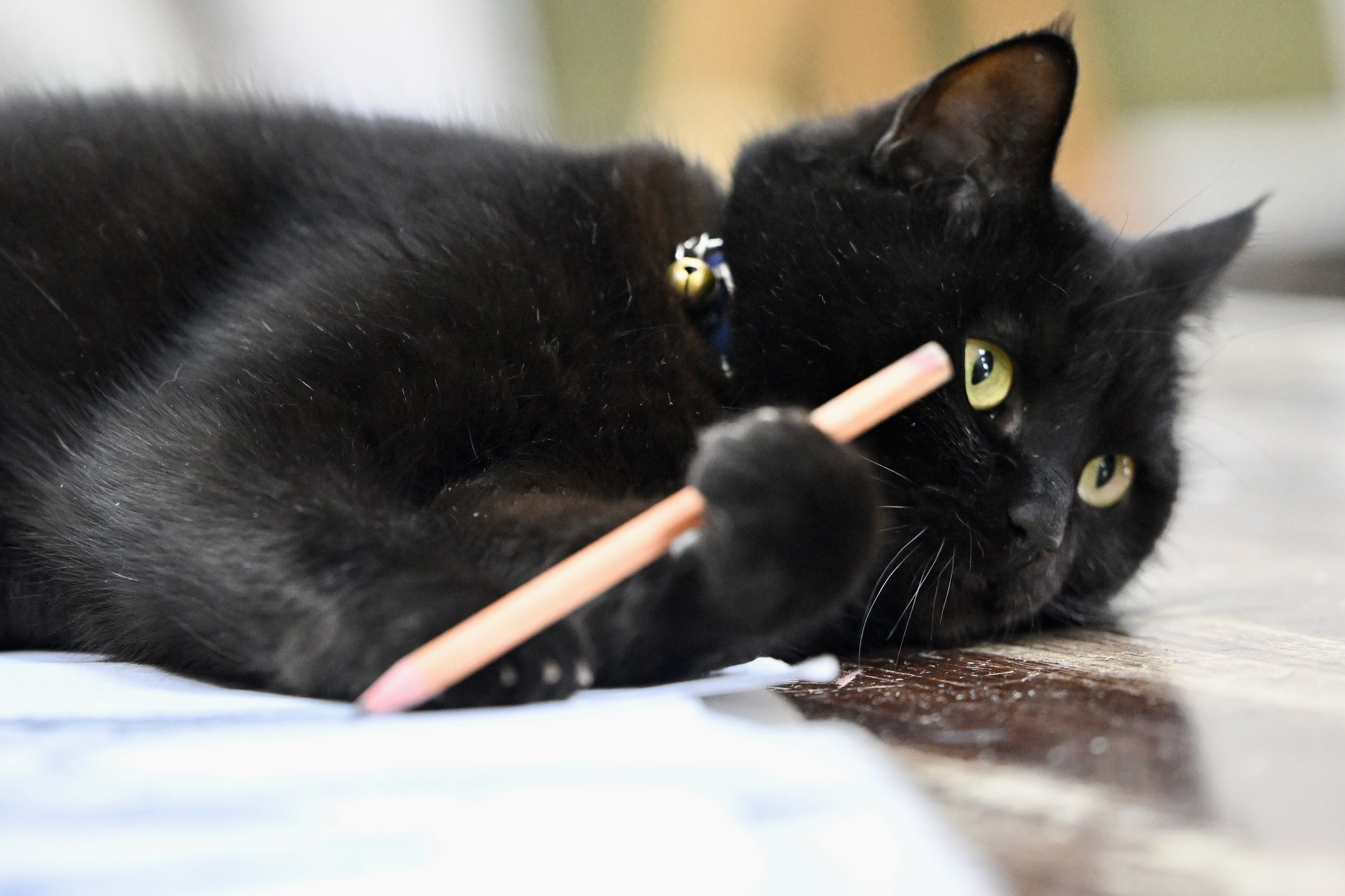 Kediyle aralarında güçlü bağ oluştuğundan bahseden Hamurci, “Her gün burada onunlayız. Olmadığında gözümüz onu arıyor. Buradaki kağıdı, kalemi, her şeyi çok seviyor” dedi.