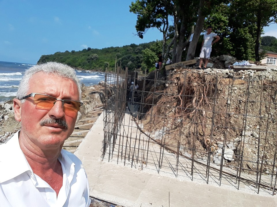 İGM’nin tecrübeli ismi Cumur, dün ise gününün büyük bölümünü Karaburun köyü plajında yıkılan istinat duvarının yapımına ayırdı.