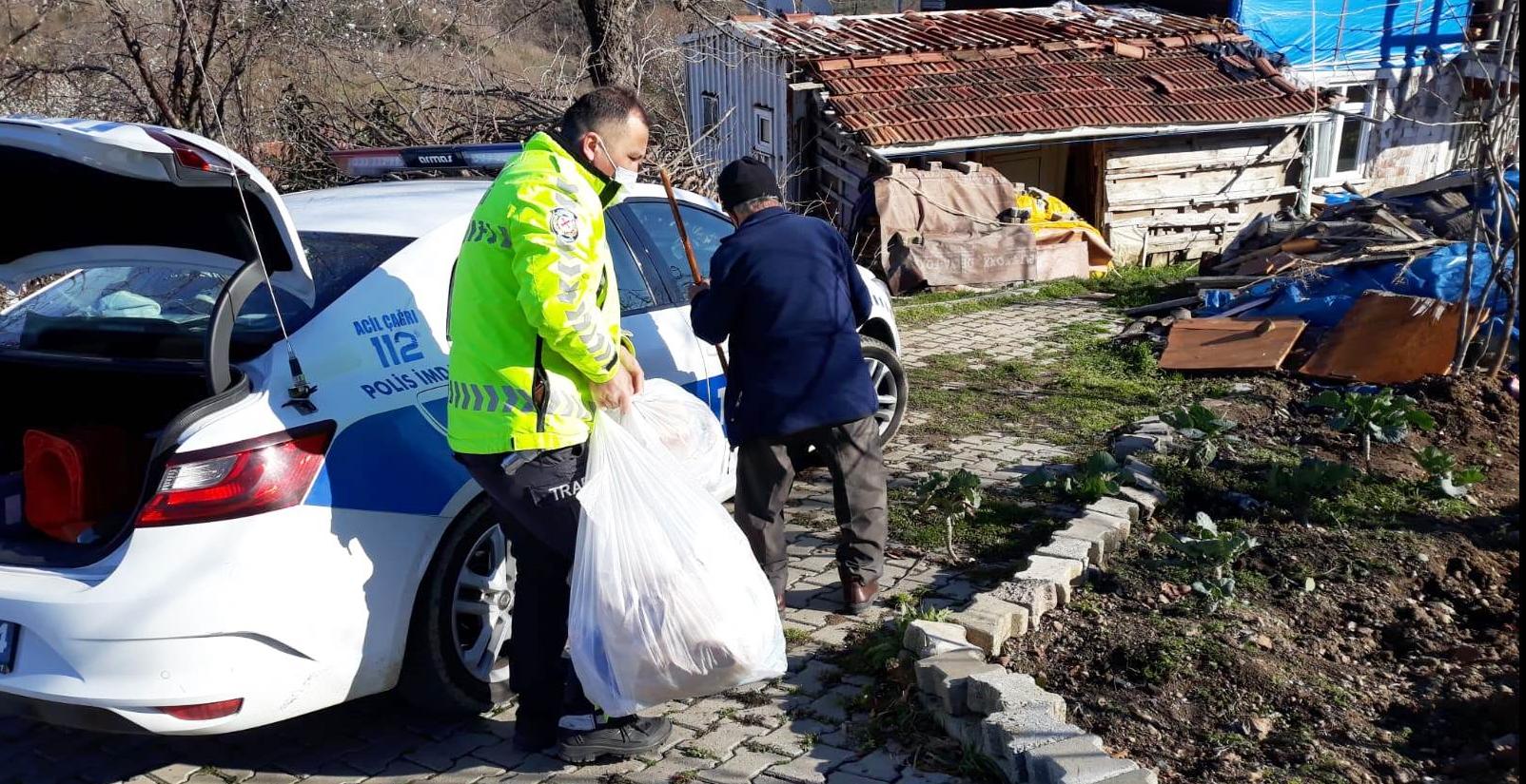 Akçakoca polisi alışverişten dönüşte yorgun düşen yaşlıya yardım eli uzattı