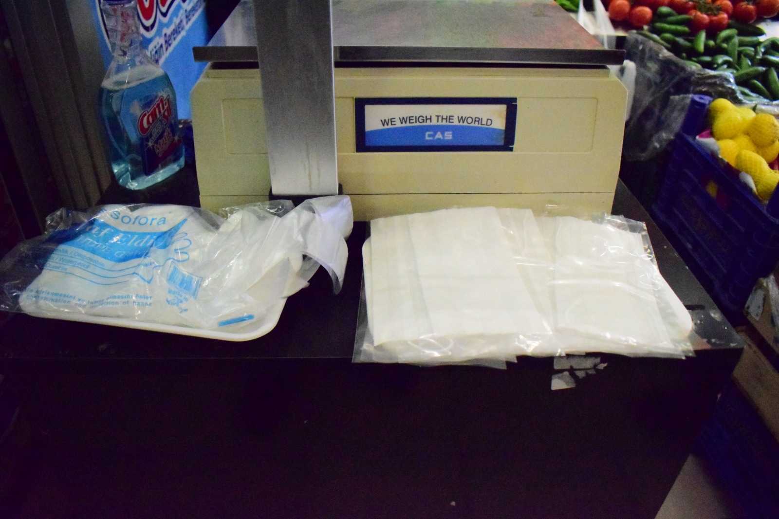 Bir tek Düzpaş market çalışanları, markete giren müşterilere ücretsiz olarak maske ve eldiven dağıtıyor.