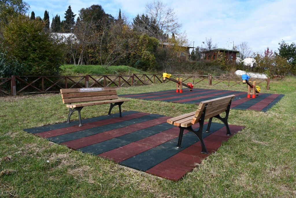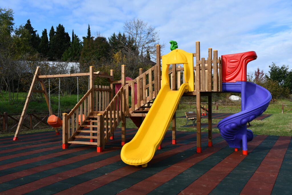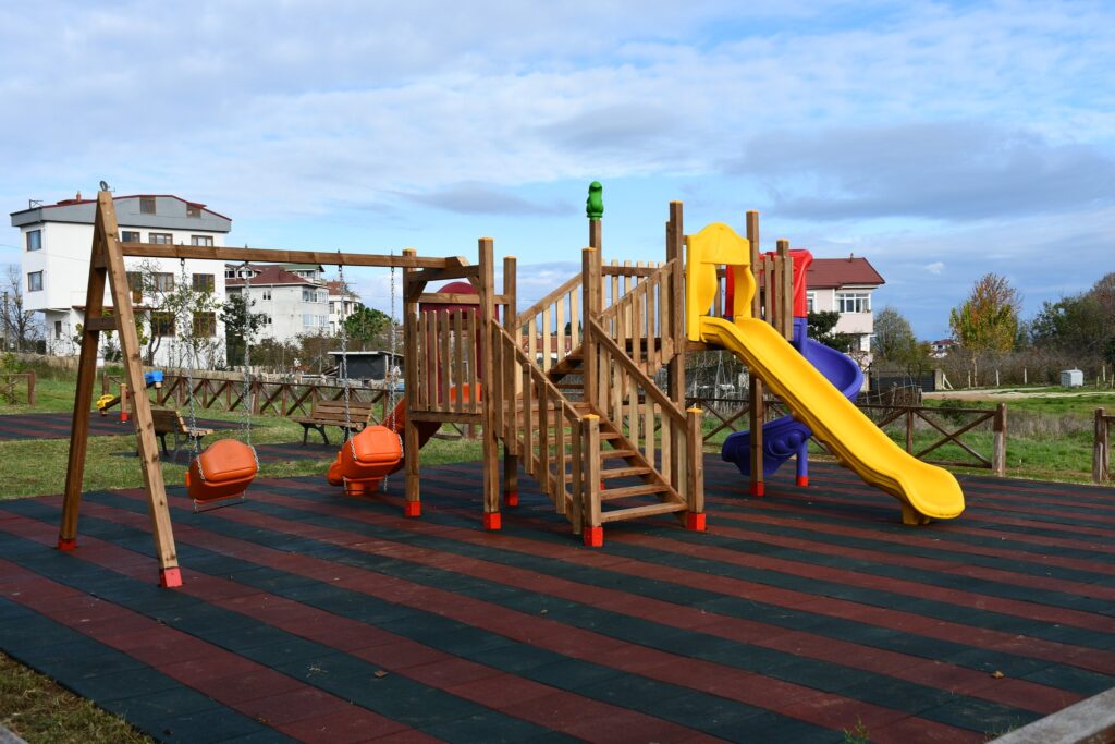 Çocukların güvenle oynayabilmesi için oyun grupları kurulan alanda, zemin darbe emici kauçuk malzeme ile kaplandı. Çevredeki ahşap çitler bakım ve onarımdan geçirilirken, ailelerin dinlenebilmesi için banklar yerleştirildi.