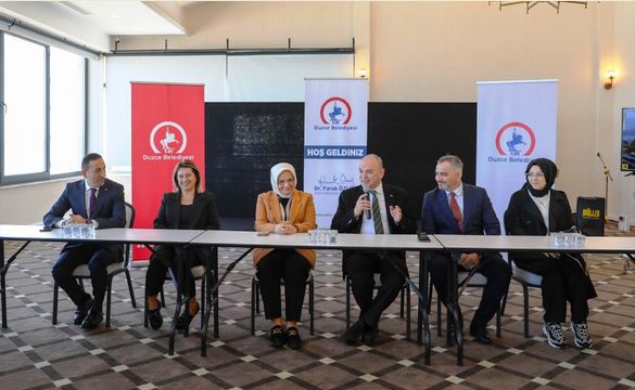 Düzce Belediye Başkanı Dr. Faruk Özlü, toplantıda yaptığı konuşmada, Düzce’nin zor ekonomik koşullara rağmen önemli yatırımlar almaya devam ettiğini vurguladı. Belediyecilik anlayışlarının günü kurtarmak değil, şehrin uzun vadeli geleceğini inşa etmek olduğunu söyleyen Özlü, “Paranın çok olmadığı bir dönemde hep beraber görev yapıyoruz. Zor şartlarda gerçekten çok kalıcı yatırımlar yapıyoruz. Bugünü kurtaralım, yarına Allah kerim hiçbir zaman demedik. Bizim bütün işlerimiz Düzce’nin uzun vadeli geleceğini kurmaya yönelik işlerdir. Günü birlik işler yerine, biz büyük bir şehir kuruyoruz, geniş bir perspektif çiziyoruz” dedi.