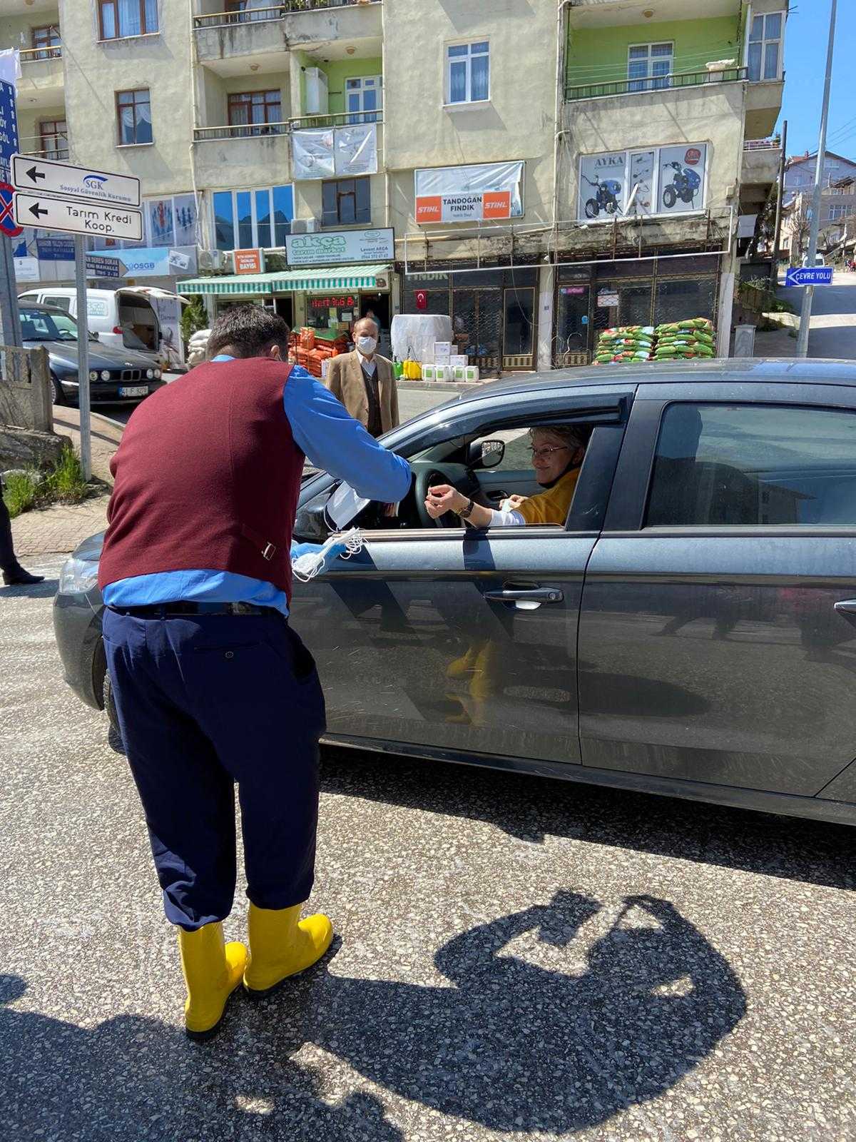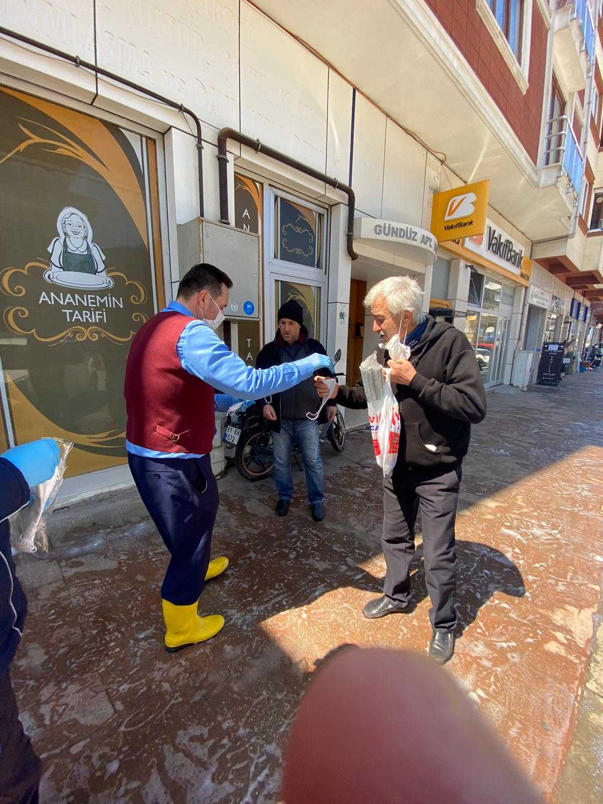 Belediye ekipleri sokak ve caddeleri temizlerken, Başkan Yanmaz da vatandaşlara maske dağıttı.