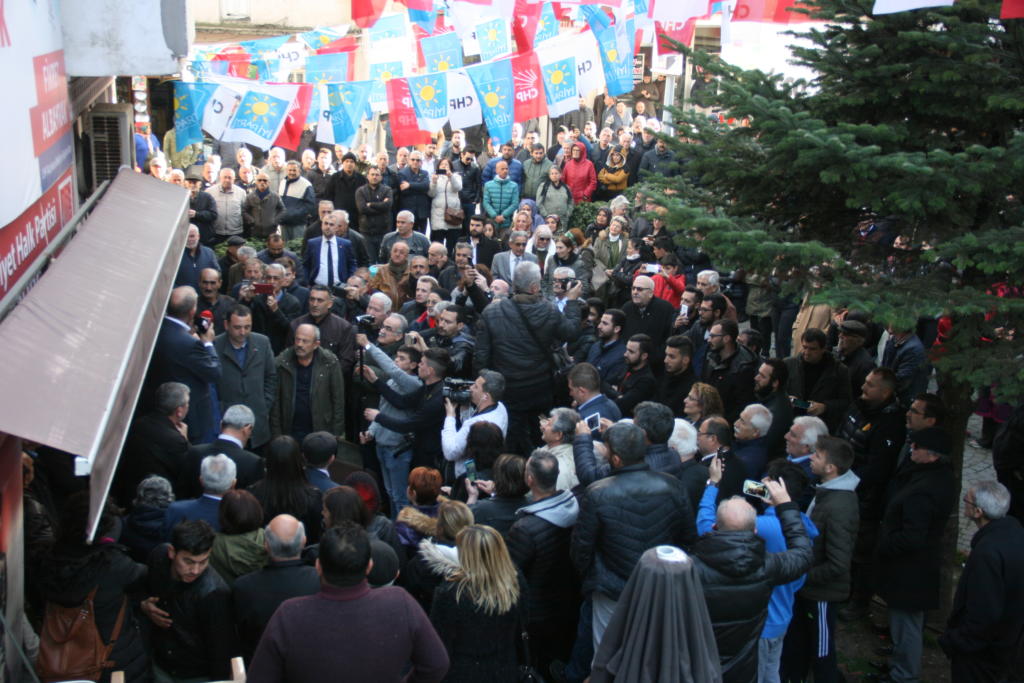 Saat 17.00’de CHP ve İYİ Parti ortak seçim bürosunu ziyaret eden CHP’li vekiller, burada İYİ Parti ve CHP’nin ilçe yöneticileri ve ortak belediye başkan adayları Fikret Albayrak tarafından karşılandılar.