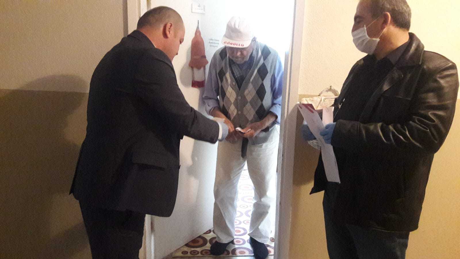 Vefa Sosyal Destek Grubu tarafından oluşturulan ekipler 65 yaş üstü sokağa çıkma yasağında olan vatandaşların maaşlarını evlerinde kendilerine teslimini yaptı