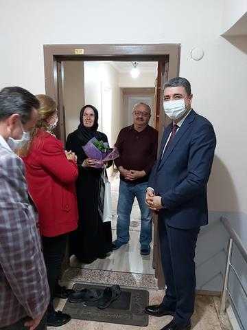 Şehidin ailesinin kapısına giden yöneticiler, burada şehidimizin annesi Şehrinaz Çelik’e çiçek takdim edip Anneler Günü’nü tebrik ettiler.