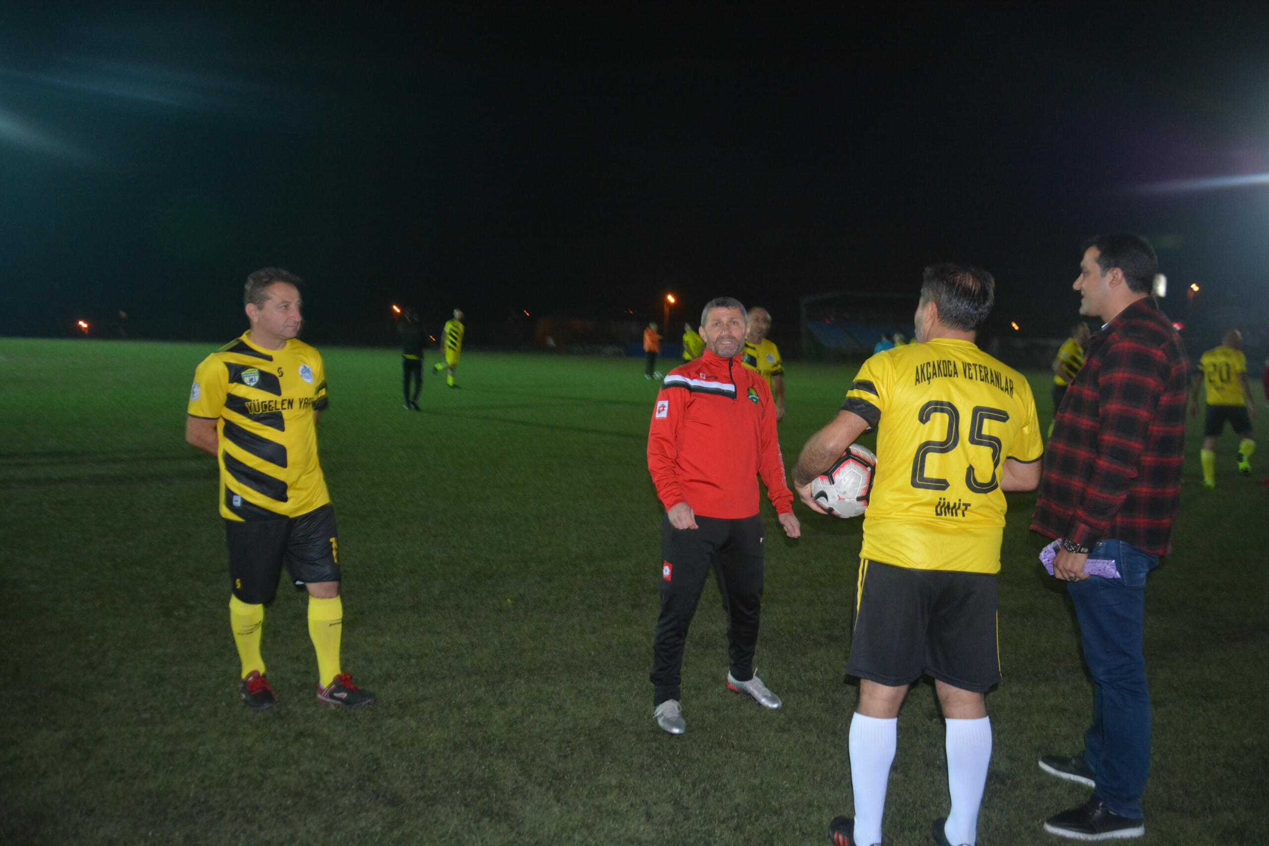 Hediye takdimlerinin ardından Polat ve veteranlar takımının oyuncuları, futbol maçı öncesinde bol bol hatıra fotoğrafları çektirdiler.